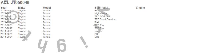 Brand: ACIPart Number: J1050049Truck Bed Cap Type: UPC: 810038764320