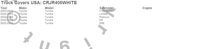 Below is an abbreviated list of applications for the American Work Cover JR..Tundra, Toyota, 2024, 2023, 2022