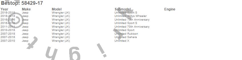 Below is an abbreviated list of applications for the Window Replacement Set.Wrangler (JK), Jeep, 2018, 2017, 2016, 2015, 2014, 2013, 2012, 2011, 2010, 2009, 2008, 2007