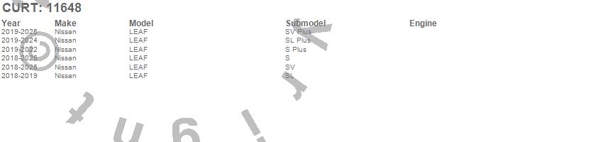 Below is an abbreviated list of applications for the Class I 1.25 in. Receiver Hitch.LEAF, Nissan, 2025, 2024, 2023, 2022, 2021, 2020, 2019, 2018