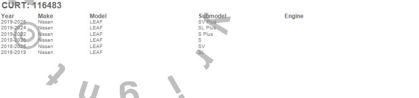 Below is an abbreviated list of applications for the Class I 1.25 in. Receiver Hitch.LEAF, Nissan, 2025, 2024, 2023, 2022, 2021, 2020, 2019, 2018