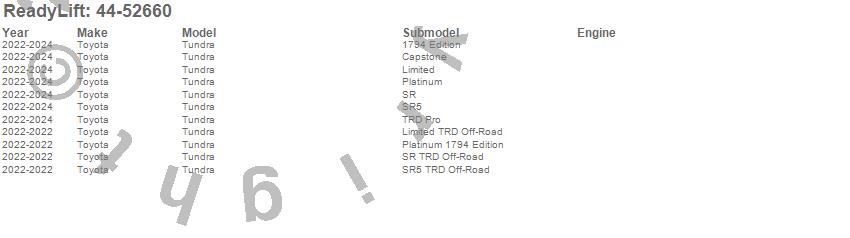Below is an abbreviated list of applications for the Big Lift Kit w/Shocks.Tundra, Toyota, 2025, 2024, 2023, 2022