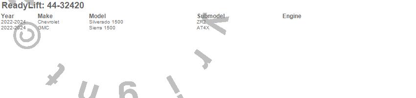 Brand: ReadyLiftPart Number: 44-32420Lift Kit-Suspension Type: 4 in. Lift - [4 in. + 2 in.] - For AT4X And ZR2UPC: 194933322961
