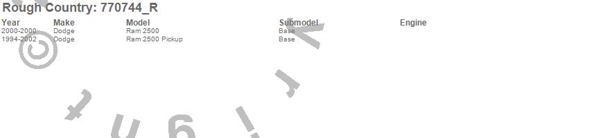 Brand: Rough CountryPart Number: 770744_RShock Absorber Type: Monotube - Rear - 6.5-8 in. Lift - 30.08 in. Extended Length - 17.87 Collapsed LengthUPC: 840269932489