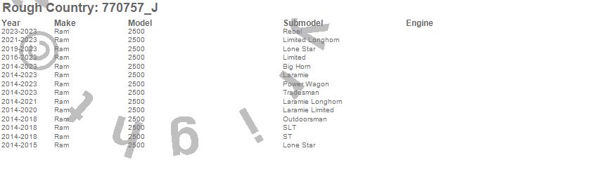 Brand: Rough CountryPart Number: 770757_JShock Absorber Type: Monotube - Rear - 6.5-8 in. Lift - 30.03 in. Extended Length - 17.64 Collapsed LengthUPC: 840269932595