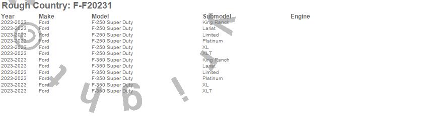Brand: Rough CountryPart Number: F-F20231Fender Flare Type: Flat Black - 2 in. Tire Coverage - 5.75 in. Flare HeightUPC: 840269935107