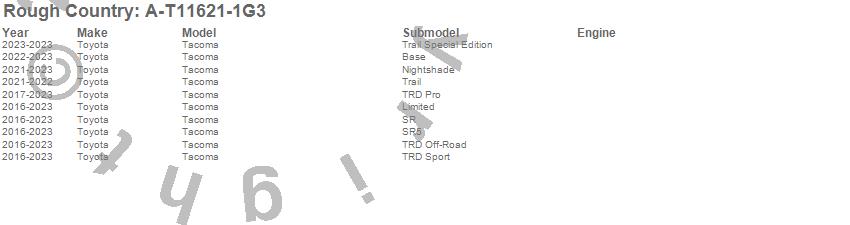 Below is an abbreviated list of applications for the Pocket Fender Flares.Tacoma, Toyota, 2023, 2022, 2021, 2020, 2019, 2018, 2017, 2016