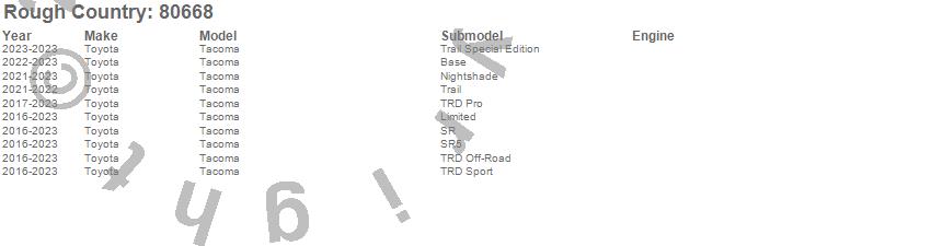 Below is an abbreviated list of applications for the Spectrum LED Light Bar.Tacoma, Toyota, 2023, 2022, 2021, 2020, 2019, 2018, 2017, 2016