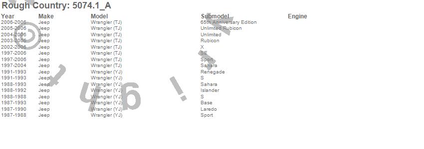 Below is an abbreviated list of applications for the CV Drive Shaft.Wrangler (TJ), Wrangler (YJ), Jeep, 2006, 2005, 2004, 2003, 2002, 2001, 2000, 1999, 1998, 1997, 1993, 1992, 1991, 1990, 1989, 1988, 1987