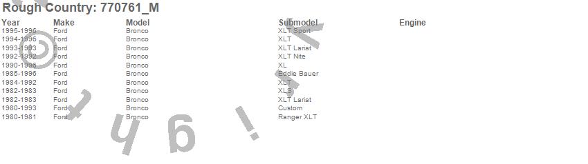Below is an abbreviated list of applications for the M1 Shock Absorber.Bronco, Ford, 1996, 1995, 1994, 1993, 1992, 1991, 1990, 1989, 1988, 1987, 1986, 1985, 1984, 1983, 1982, 1981, 1980