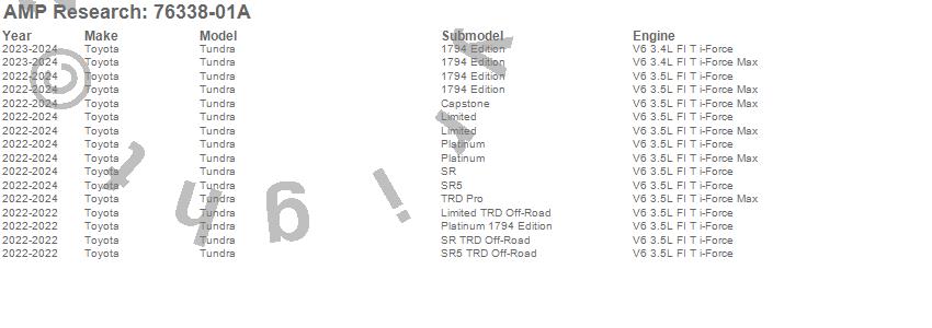 Below is an abbreviated list of applications for the PowerStep Plug-N-Play System.Tundra, Toyota, 2025, 2024, 2023, 2022