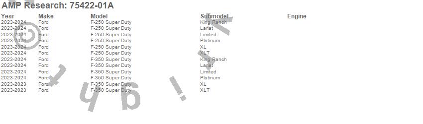 Brand: AMP ResearchPart Number: 75422-01ATruck Step Type: Black - Driver Side OnlyUPC: 815410016738