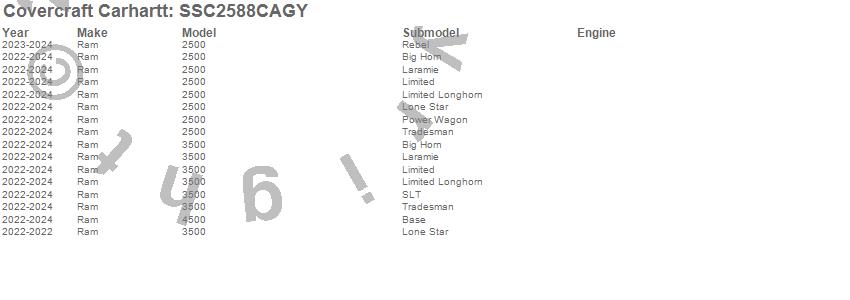 Below is an abbreviated list of applications for the Covercraft Carhartt SeatSaver.2500, 3500, 4500, Ram, 2025, 2024, 2023, 2022