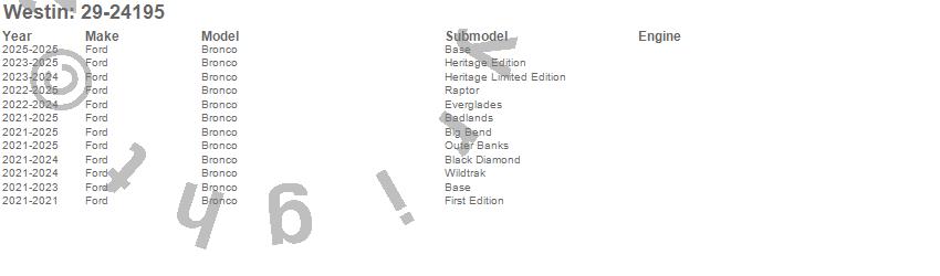 Brand: WestinPart Number: 29-24195Running Board Type: Textured BlackUPC: 707742121030