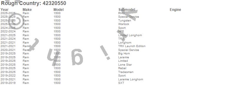 Brand: Rough CountryPart Number: 42320550Tonneau Cover Type: UPC: 840269924330