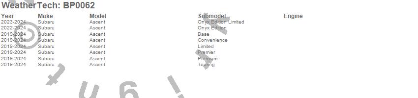 Below is an abbreviated list of applications for the BumperTopper.Ascent, Subaru, 2025, 2024, 2023, 2022, 2021, 2020, 2019