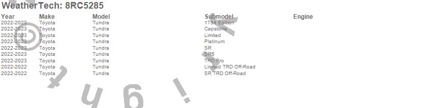 Below is an abbreviated list of applications for the WeatherTech Roll Up Truck Bed Cover.Tundra, Toyota, 2026, 2025, 2023, 2022