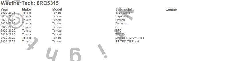 Below is an abbreviated list of applications for the WeatherTech Roll Up Truck Bed Cover.Tundra, Toyota, 2026, 2025, 2024, 2023, 2022