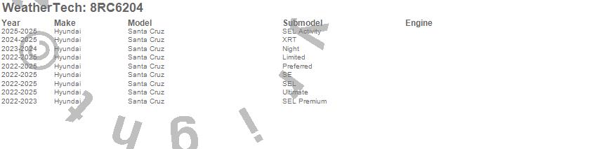 Below is an abbreviated list of applications for the WeatherTech Roll Up Truck Bed Cover.Santa Cruz, Hyundai, 2026, 2025, 2024, 2023, 2022