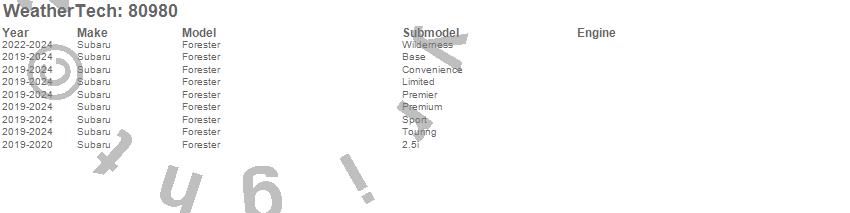 Below is an abbreviated list of applications for the Side Window Deflector.Forester, Subaru, 2025, 2024, 2023, 2022, 2021, 2020, 2019