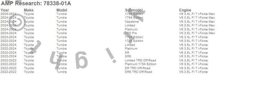 Below is an abbreviated list of applications for the PowerStep Xtreme.Tundra, Toyota, 2026, 2025, 2024, 2023, 2022