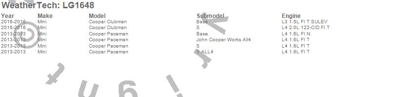 Below is an abbreviated list of applications for the LampGard.Cooper, Cooper Clubman, Cooper Paceman, Mini, 2016, 2014, 2013, 2012, 2011