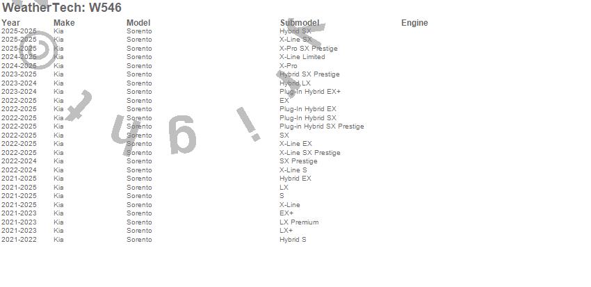 Below is an abbreviated list of applications for the All Weather Floor Mats.Sorento, Kia, 2025, 2024, 2023, 2022, 2021