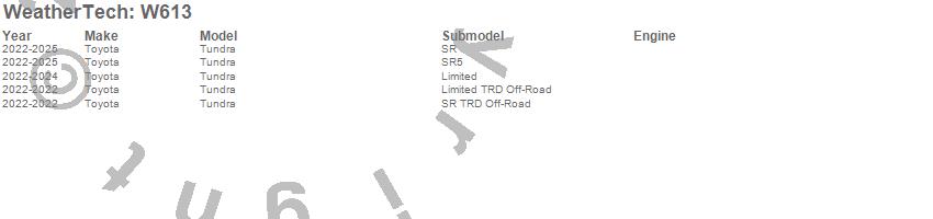 Below is an abbreviated list of applications for the All Weather Floor Mats.Tundra, Toyota, 2025, 2024, 2023, 2022