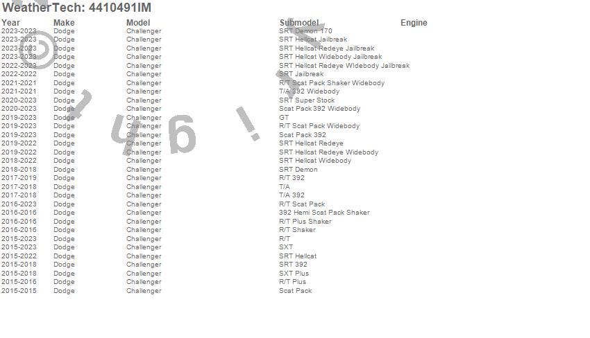 Below is an abbreviated list of applications for the FloorLiner HP.Challenger, Dodge, 2023, 2022, 2021, 2020, 2019, 2018, 2017, 2016, 2015