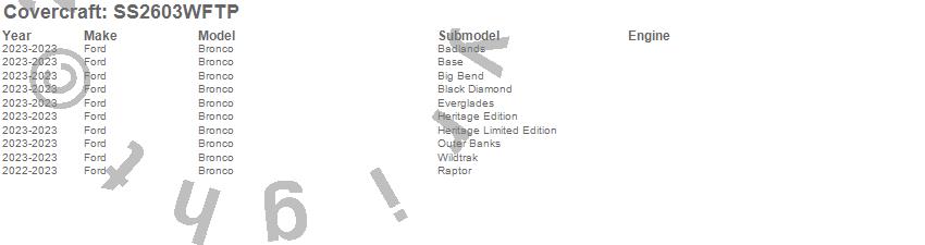 Below is an abbreviated list of applications for the SeatSaver Custom Seat Cover.Bronco, Ford, 2025, 2024, 2023, 2022