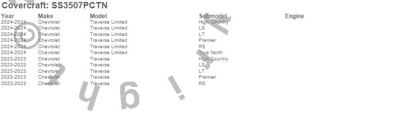 Below is an abbreviated list of applications for the SeatSaver Custom Seat Cover.Traverse, Traverse Limited, Chevrolet, 2024, 2023