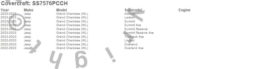 Below is an abbreviated list of applications for the SeatSaver Custom Seat Cover.Grand Cherokee, Grand Cherokee (WK2), Grand Cherokee (WL), Jeep, 2025, 2024, 2023, 2022