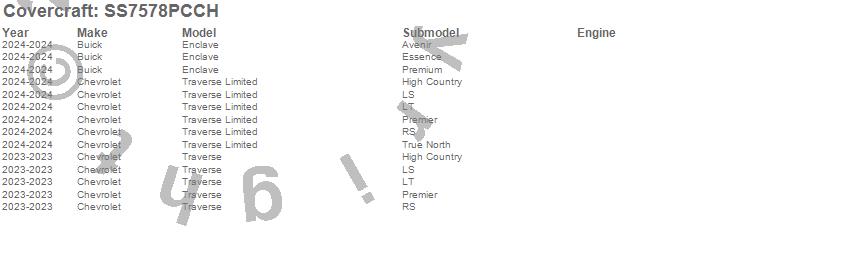 Below is an abbreviated list of applications for the SeatSaver Custom Seat Cover.Enclave, Traverse, Traverse Limited, Buick, Chevrolet, 2024, 2023