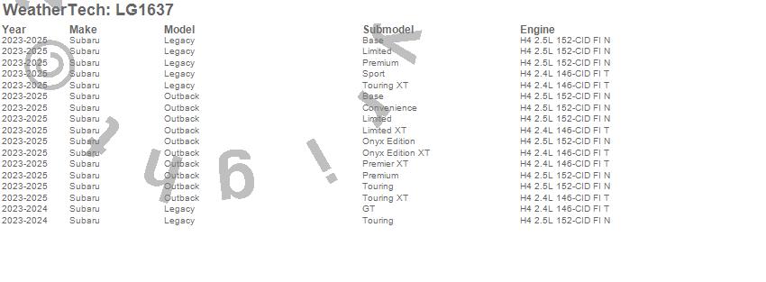 Below is an abbreviated list of applications for the LampGard.Legacy, Outback, Subaru, 2025, 2024, 2023