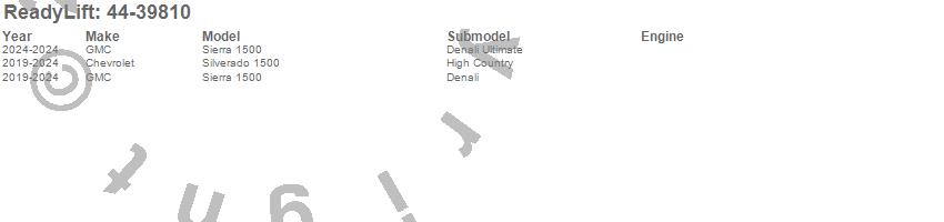 Brand: ReadyLiftPart Number: 44-39810Lift Kit-Suspension Type: 8 in. Lift - w/ARCUPC: 194933303069