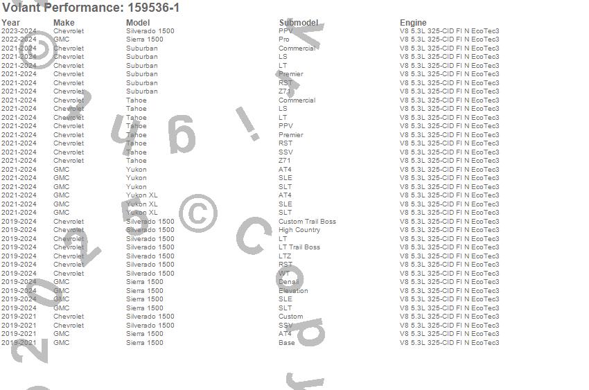 Below is an abbreviated list of applications for the PowerCore Closed Box Air Intake.Sierra 1500, Silverado 1500, Suburban, Tahoe, Yukon, Yukon XL, Chevrolet, GMC, 2024, 2023, 2022, 2021, 2020, 2019