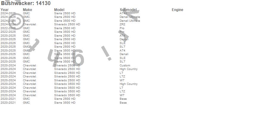 Below is an abbreviated list of applications for the TrailArmor Rocker Panel.Sierra 2500 HD, Sierra 3500 HD, Silverado 2500 HD, Silverado 3500 HD, Chevrolet, GMC, 2026, 2025, 2024, 2023, 2022, 2021, 2020
