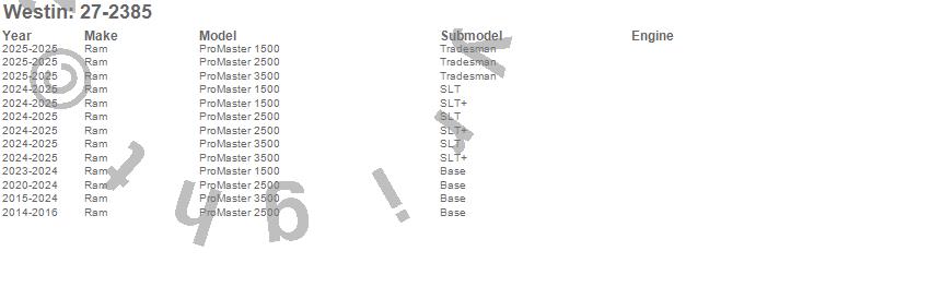 Below is an abbreviated list of applications for the Running Board Mount Kit.ProMaster 1500, ProMaster 2500, ProMaster 3500, Ram, 2025, 2024, 2023, 2022, 2021, 2020, 2019, 2018, 2017, 2016, 2015, 2014