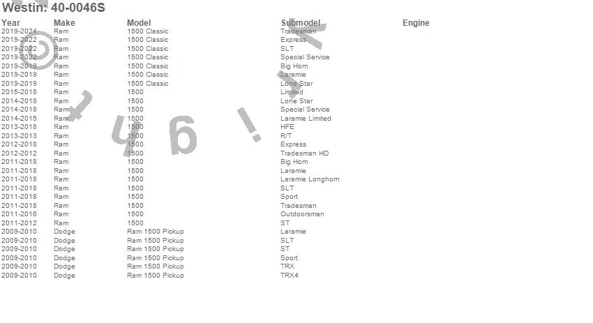 Brand: WestinPart Number: 40-0046SParking Aid Sensor Wiring Harness Type: UPC: 707742098066
