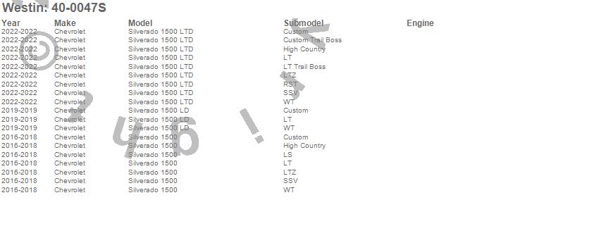 Below is an abbreviated list of applications for the Parking Sensor Harness Extension.Silverado 1500, Silverado 1500 LD, Silverado 1500 LTD, Chevrolet, 2022, 2019, 2018, 2017, 2016