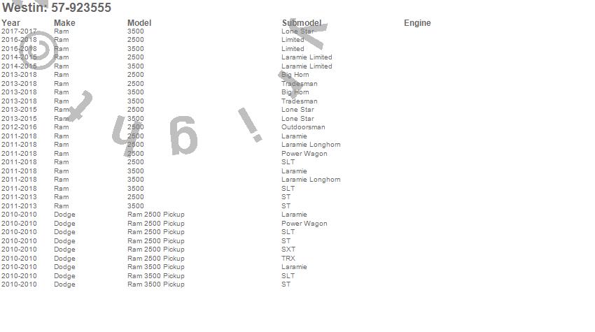 Brand: WestinPart Number: 57-923555Grille Guard Type: UPC: 707742118788