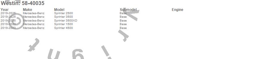 Below is an abbreviated list of applications for the Active Cruise Control Relocator.Sprinter 1500, Sprinter 2500, Sprinter 3500, Sprinter 3500XD, Sprinter 4500, Mercedes-Benz, 2025, 2024, 2023, 2022, 2021, 2020, 2019