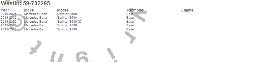 Below is an abbreviated list of applications for the Accessory For XTS.Sprinter 1500, Sprinter 2500, Sprinter 3500, Sprinter 3500XD, Sprinter 4500, Mercedes-Benz, 2025, 2024, 2023, 2022, 2021, 2020, 2019