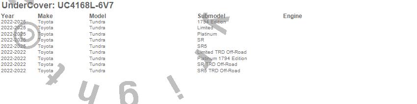 Brand: UnderCoverPart Number: UC4168L-6V7Tonneau Cover Type: Army Green - Paint Code 6V7UPC: 840114324667