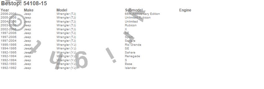 Below is an abbreviated list of applications for the RoughRider Saddlebag/Duffle.Wrangler (TJ), Wrangler (YJ), Jeep, 2006, 2005, 2004, 2003, 2002, 2001, 2000, 1999, 1998, 1997, 1995, 1994, 1993, 1992