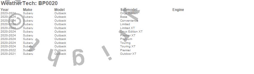 Below is an abbreviated list of applications for the BumperTopper.Outback, Subaru, 2025, 2024, 2023, 2022, 2021, 2020