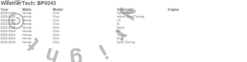 Below is an abbreviated list of applications for the BumperTopper.Civic, Honda, 2026, 2025, 2024, 2023, 2022