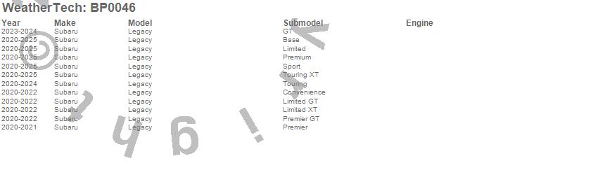 Below is an abbreviated list of applications for the BumperTopper.Legacy, Subaru, 2024, 2023, 2022, 2021, 2020