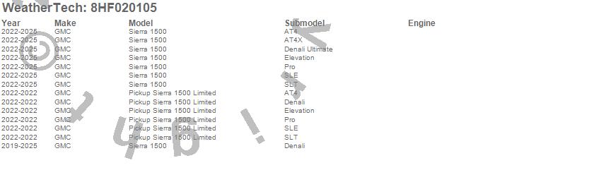 Brand: WeatherTechPart Number: 8HF020105Tonneau Cover Type: UPC: 787765175708