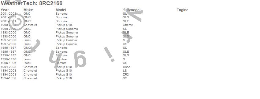 Below is an abbreviated list of applications for the WeatherTech Roll Up Truck Bed Cover.Hombre, S10 Pickup, Sonoma, Chevrolet, GMC, Isuzu, 2003, 2002, 2001, 2000, 1999, 1998, 1997, 1996, 1995, 1994
